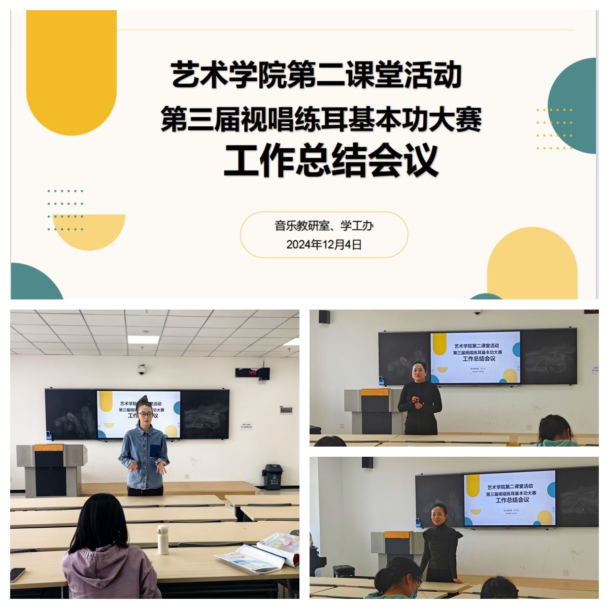 12月4日,艺术学院音乐教研室和学工办主办的“2024—2025学年第二课堂暨第三届视唱练耳基本功大赛”活动在教学楼318教室成功举办。本次比赛旨在学生根据个人能力,通过自主选择、创编、表演比赛曲目的环节,为同学们提供给一个拓展知识、展示自我、团队合作的实践平台。