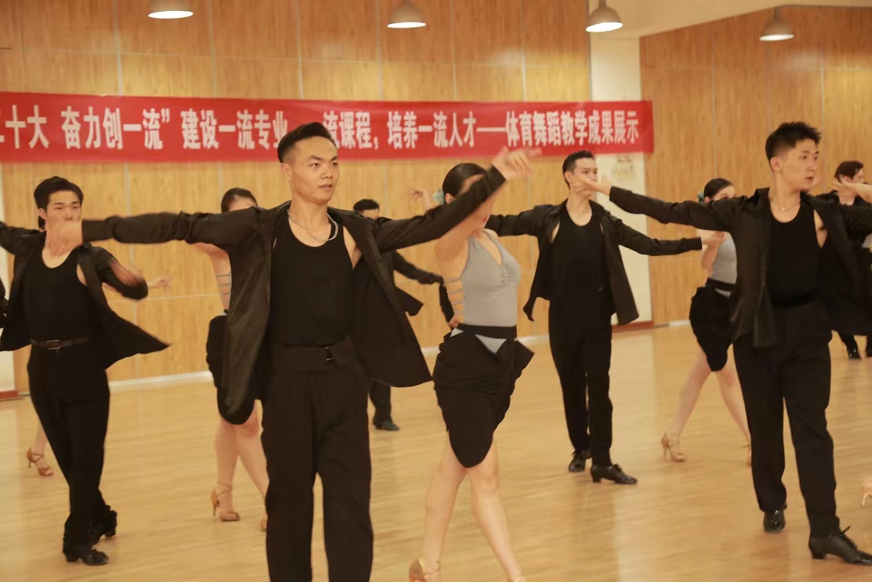 我校舞蹈表演专业于2020年被评为省级一流本科专业,2021年申报国家级一流本科专业,《拉丁舞》课程于2020年被评为西安体育学院首批校级一流本科课程,2021年被评为省级一流本科课程,《标准舞》课程于2021年申报校级一流本科课程。同时发展《体育舞蹈》课程线上线下混合式教学,教学视频已录制完成并上传至“学习通”平台,在进行了2轮教学实践后,视频点击量逐步增加。在双一流建设带动下,我们的教学成果也收获颇丰,近三年来,体育舞蹈方向学生参加各级各类专业比赛并勇创佳绩,专业能力及社会影响力不断增高。我们将继续秉承学校专业建设要求,进一步推动教学改革,不断创新,再创佳绩。