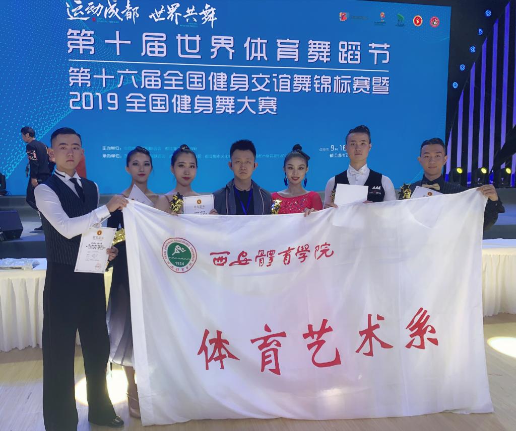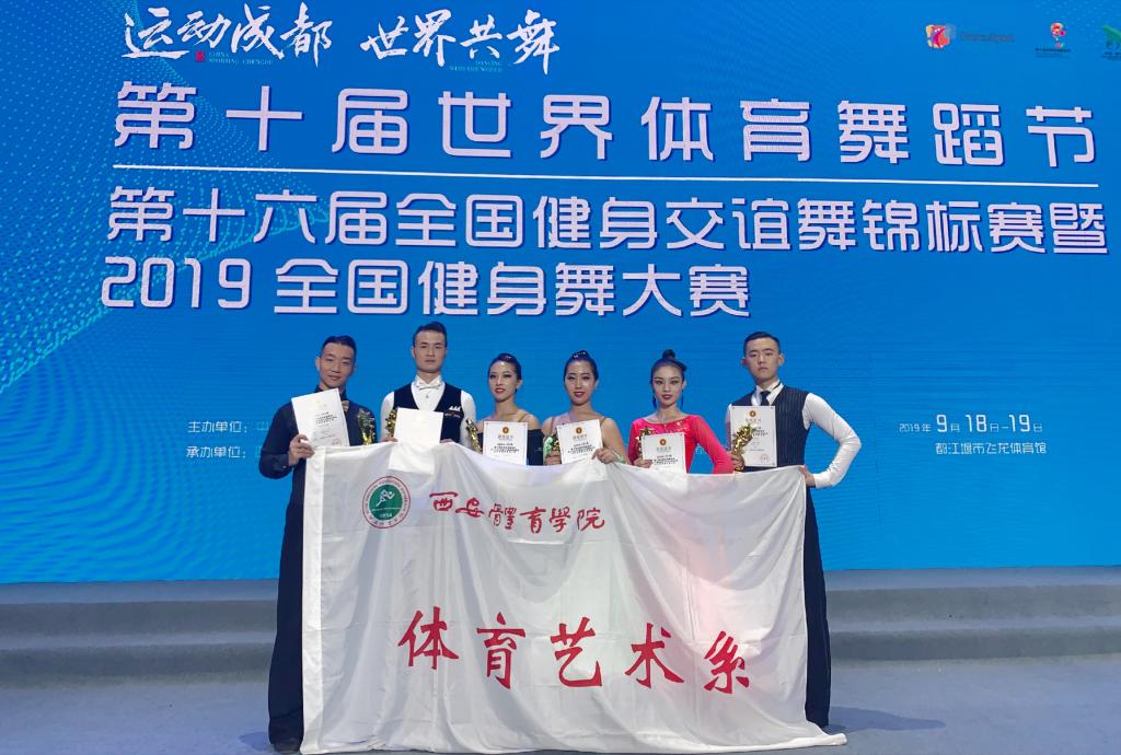我院大学生体育舞蹈、交谊舞代表队,以绚丽的舞蹈技术技巧,以及体育舞蹈所特有的丰富的表现力和感染力,荣获全能精英公开组一等奖和三等奖,专业院校精英A组一等奖、二等奖、三等奖。专业院校A组一等奖,专业院校B组一等奖,专业院校C组一等奖。充分展现了我院大学生努力拼搏,积极向上的决心!得到了大赛观众以及裁判评委的一致好评。