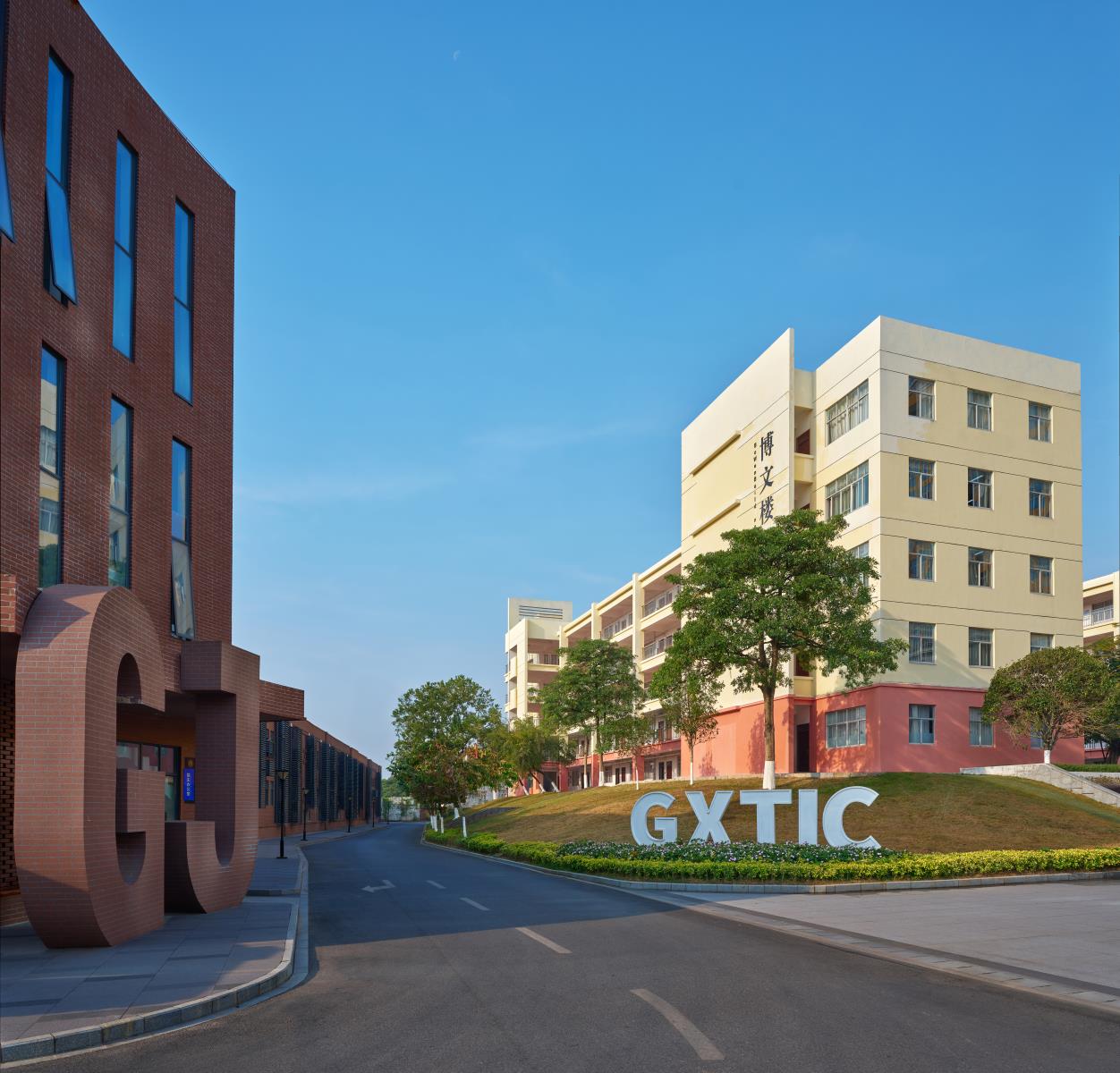 晚霞中的学校大门