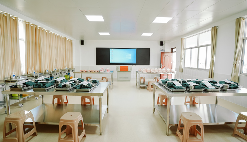 学院现有基础医学、基础护理、健康评估、外科等15间专业实训室,总面积1100多平方米。未来3年,学院将继续扩建基础实训室、老年康复及中医实训室,实现专业实验室总面积达5000平方米的阶段性目标,并逐步建成融教学、实训、培训、技能鉴定、技术服务“五位一体“的现代智能化护理实训中心。