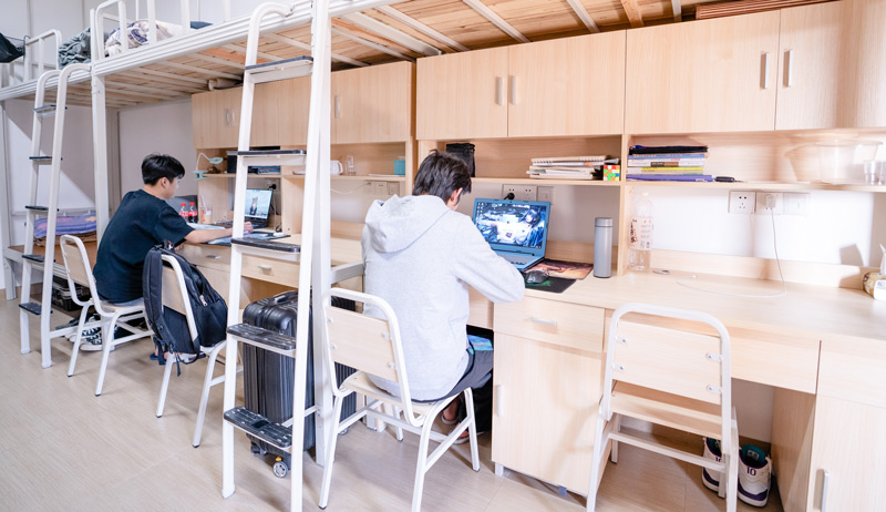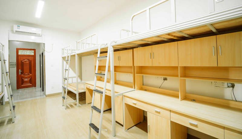 宿舍以6人间和8人间为主,均配置独立卫生间、洗浴间,安装空调、洗衣机、桌子、衣柜等,同时,实现WIFI全覆盖和24小时供应热水,定期进行清洁和卫生消毒,让学生能在舒适的环境中学习和生活并保障学生的生活健康。