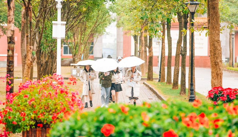 校内绿树成荫、花香弥漫,花坛上盛开着各式各样的鲜花,给人视觉和嗅觉上的双重享受。校园里教学楼、宿舍楼、食堂等建筑错落有致地分布在各处,有的建筑外观高大宏伟,有的则简约雅致,给人留下深刻的印象。