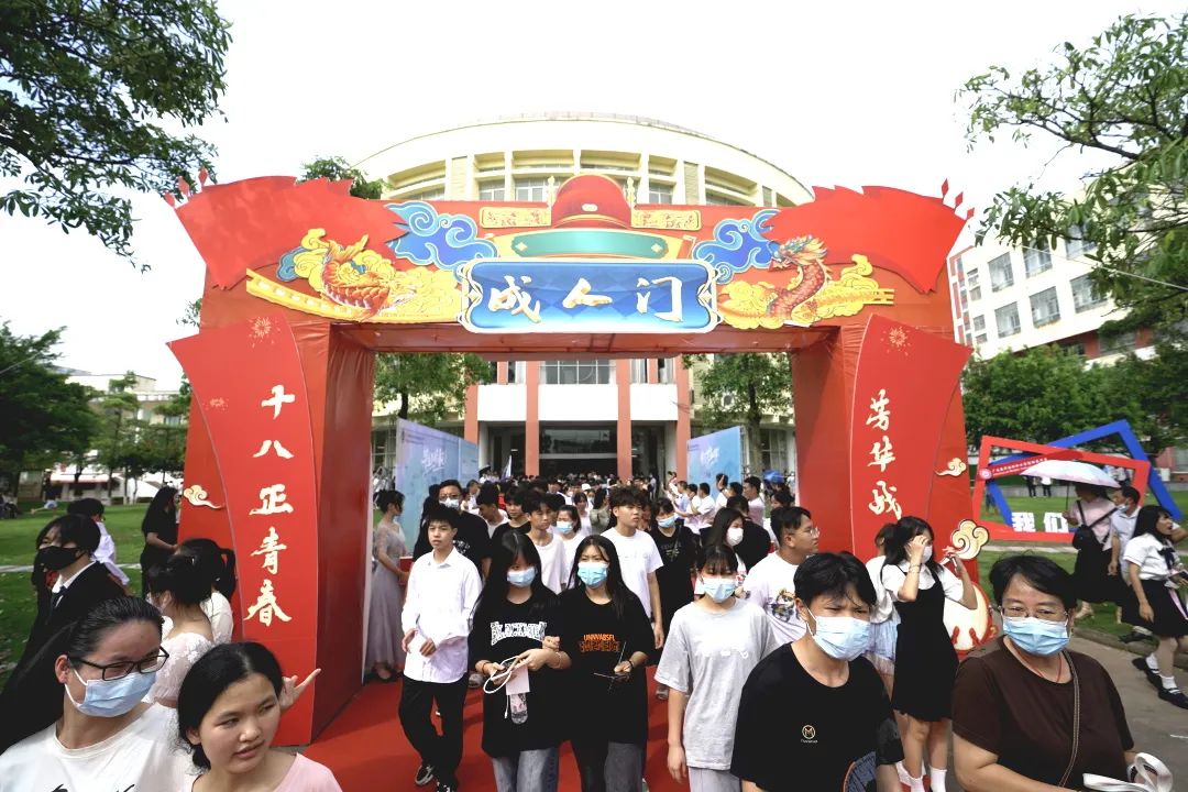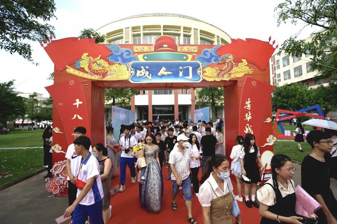 “百年恰是风华正茂,青春正当奋进前行”。我们生逢其时,重任在肩。路是人走出来的,事业是人干出来的。典礼最后一项仪式,全体老师走到成人门,目送毕业生出发。