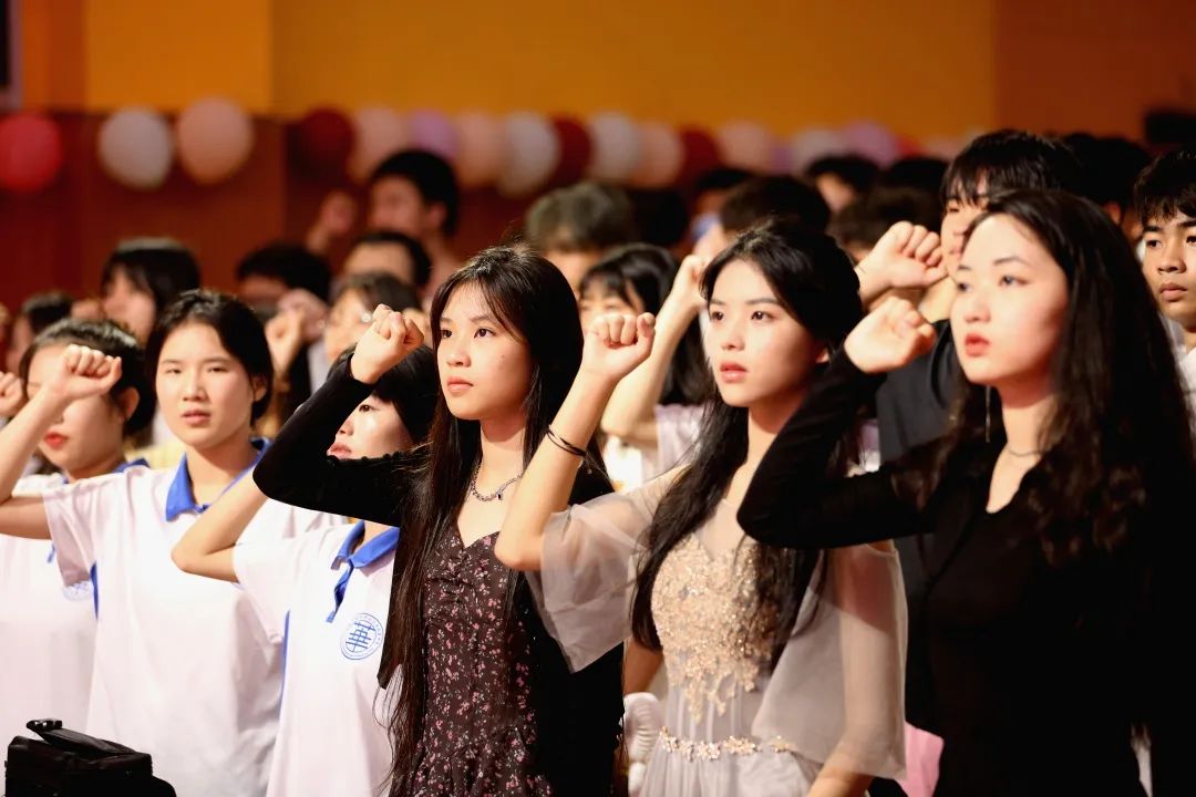广西英华国际职业学院党委书记黄家良,附属中学校长蓝娟、校长助理陈汝毅、校长助理陈诚、党支部书记陈志媛,以及附中行政领导、年级主任、高三全体师生和家长代表出席了本次典礼。王梓、韦子西主持典礼。