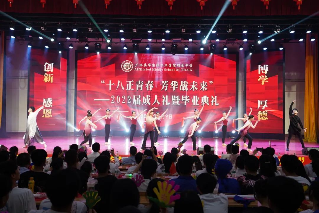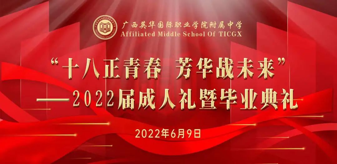 6月9日下午,广西英华国际职业学院附属中学在学术报告厅举办主题为“十八正青春,芳华战未来”的高三成人礼暨毕业典礼活动,为即将告别高中生活踏上新的人生旅程的2022届同学表达母校最衷心的祝福。