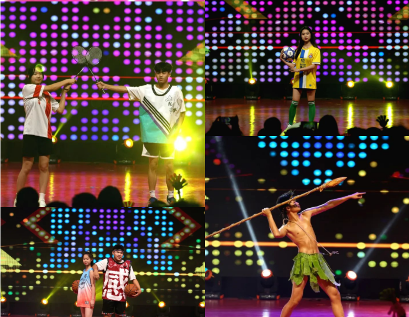美术生把收集来的废纸、编织袋、树叶等废弃材料,通过剪裁彩绘等一系列手工操作制作出一件件精美“时尚”的时装,再由体育、美术专业生通过学科特色的项目舞台走秀展示给所有观众,体现出当代高中生美育和体育的环保意识。