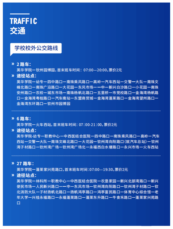 此外,在校门口设有便捷的公交车站,覆盖2路、6路和27路,并连接各个方向和重要地点。只需几步之遥即可搭乘公交车,既节省了等待公车的时间,也减轻了家长接送孩子的负担。在周末学校还提供直达县城的专线服务,使同学们回家更加方便顺畅。便利的交通优势让同学们能够更好地安排自己宝贵的时间。