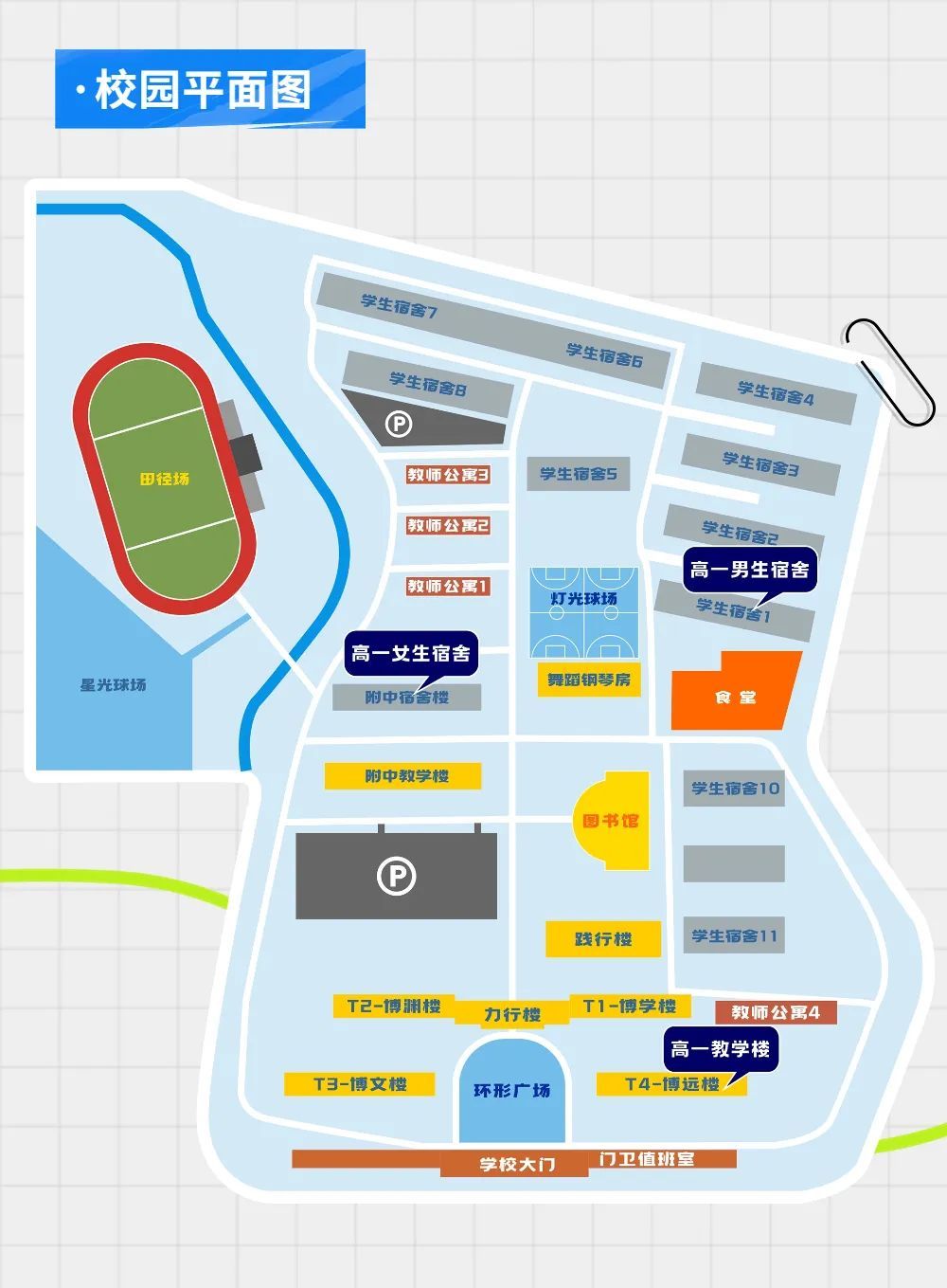 担心找不到路?不用担心,入学须知的宝藏校园平面图指引着校园的各个方向,确保你畅通无阻。