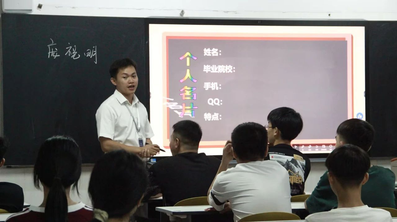 新生们晚上到了教室,各班班主任组织同学们进行了彼此的自我介绍及开学第一课班会。