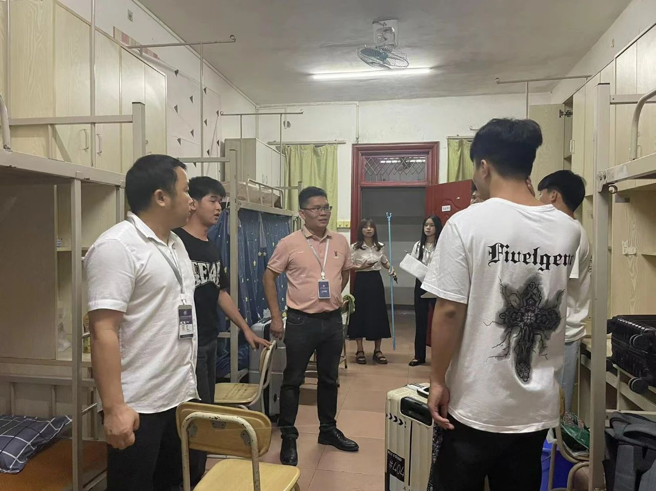 学校领导带领着班主任们深入新生宿舍,了解学生入学情况,担心学生初入高中各种的不适应,到寝室里关心学生,为学生解决困难,让学生感受到满满的温暖。