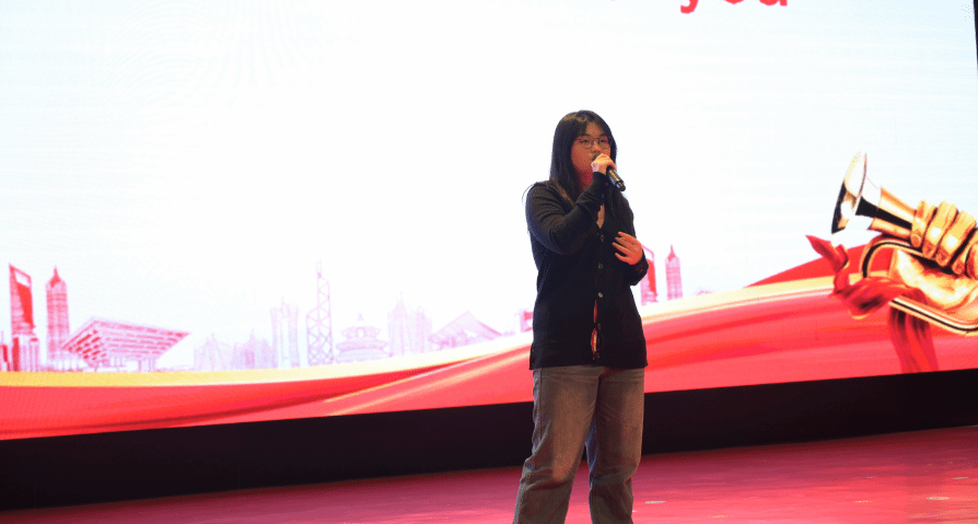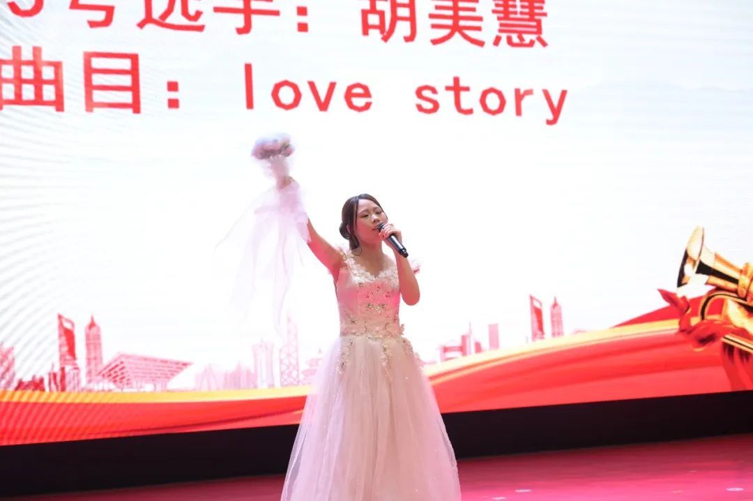 高三(1)班的胡美慧演唱了《Love story》,她热情洋溢地与全场同学们互动,带动了全场同学们欢呼、鼓掌,会场气氛再次达到高潮。