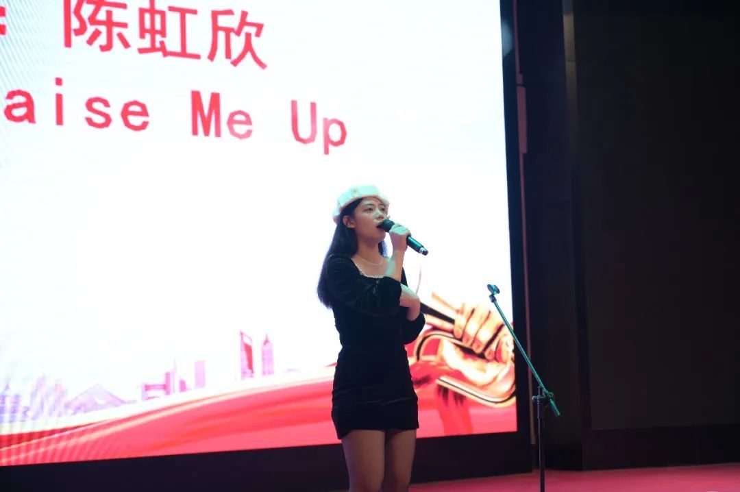 高三(14)班的陈虹欣带来了以优美的声线、准确的发音、沉稳的台风以及对歌曲深情的演绎,以一首《You raise me up》赢得了全场喝彩。