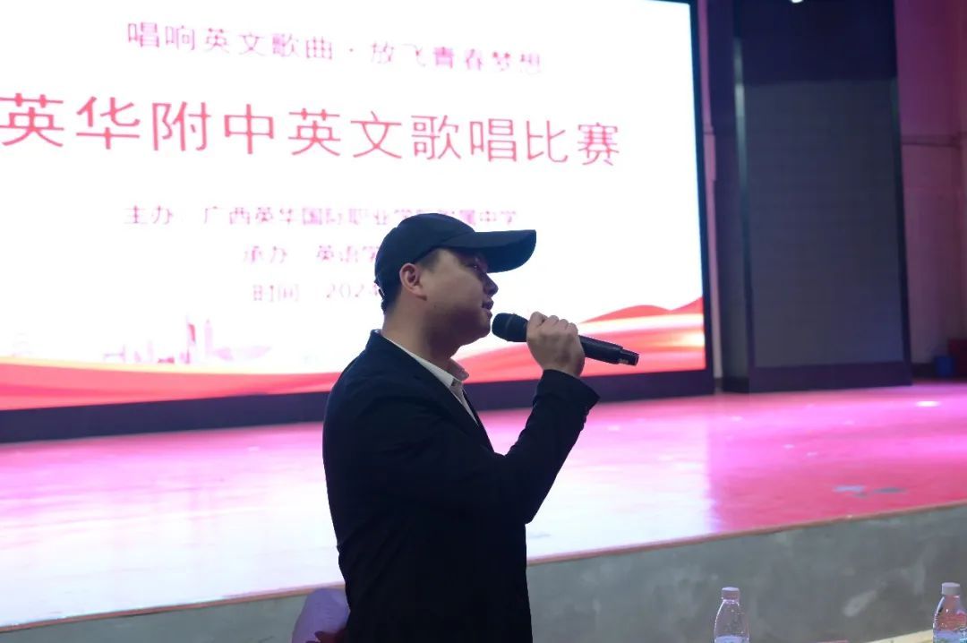 出席本次活动的领导有广西英华国际职业学院附属中学副校长黄艳琼、副校长陈汝毅、党支部书记兼校长助理陈诚、团委书记杨婷婷;担任本次活动的评委老师分别有:李金华老师、黎桂荣老师、陈志媛老师、林兴涛老师、蒙春程老师、杨茜老师。本次活动中文主持人是李璐瑩,英文主持人劳思凝、宁建卫。