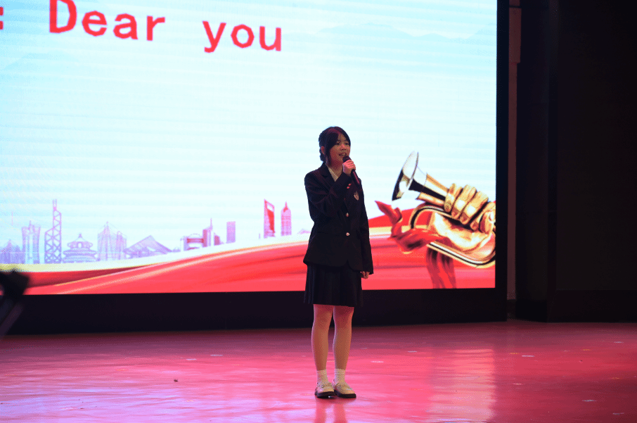 高一(1)班的利佳慧首个出场,一首《Dear you》使整个会场变得轻松愉快起来。