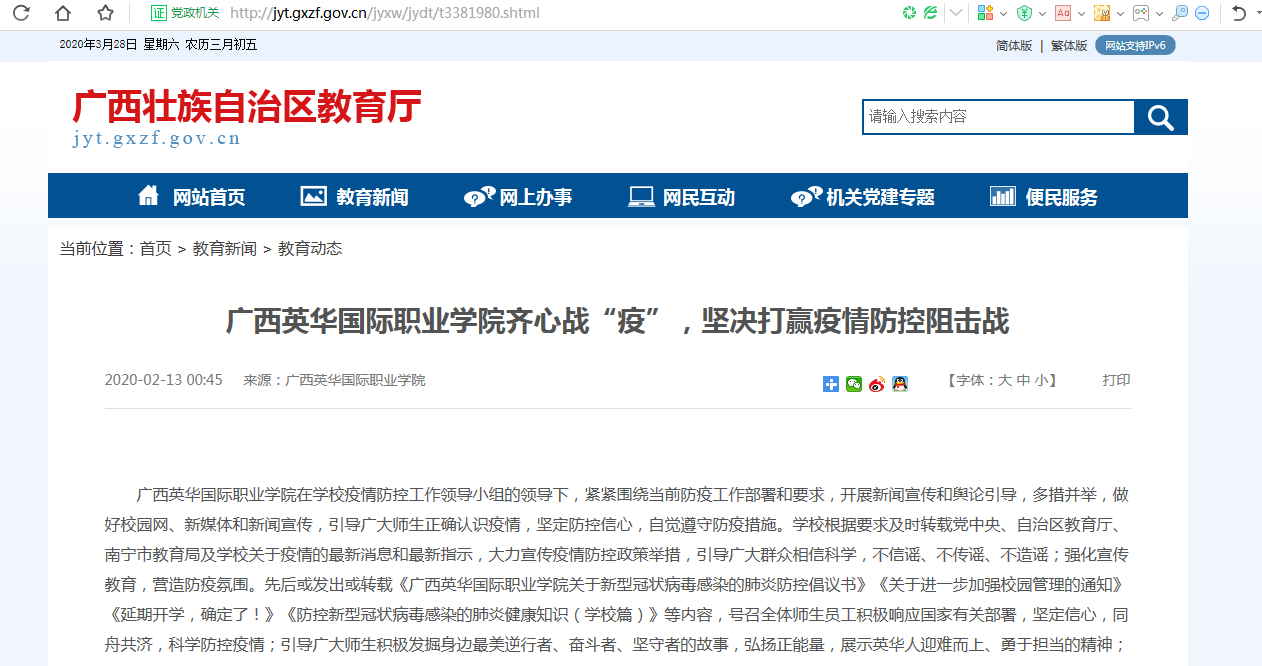 广西教育厅-广西英华国际职业学院齐心战“疫”,坚决打赢疫情防控阻击战