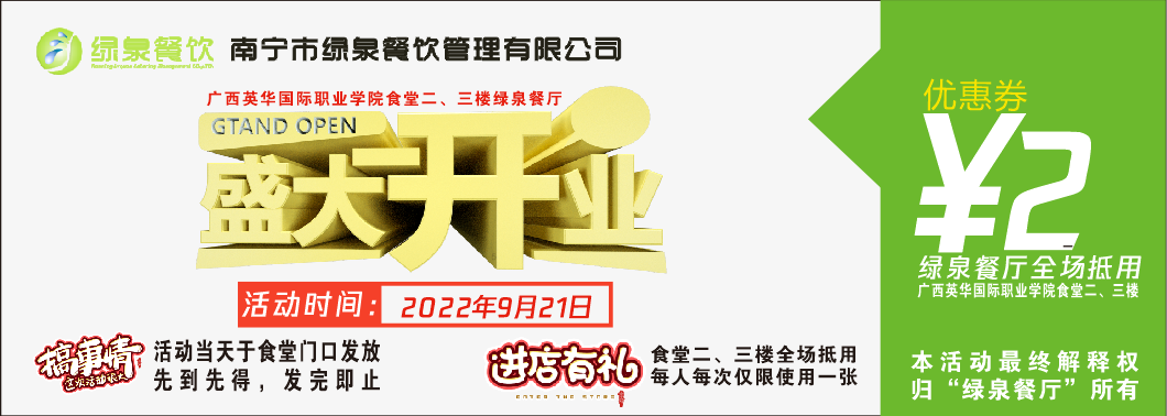 民以食为天,英华er们,请做好准备,前方一大波美食福利马上抵达现场!绿泉餐厅开业啦! 开业福利一活动时间:9月21日当天 开业福利二活动时间:9月21日-9月23日 来源 SOURCE品牌传播中心照片 PHOTO绿泉餐厅撰...