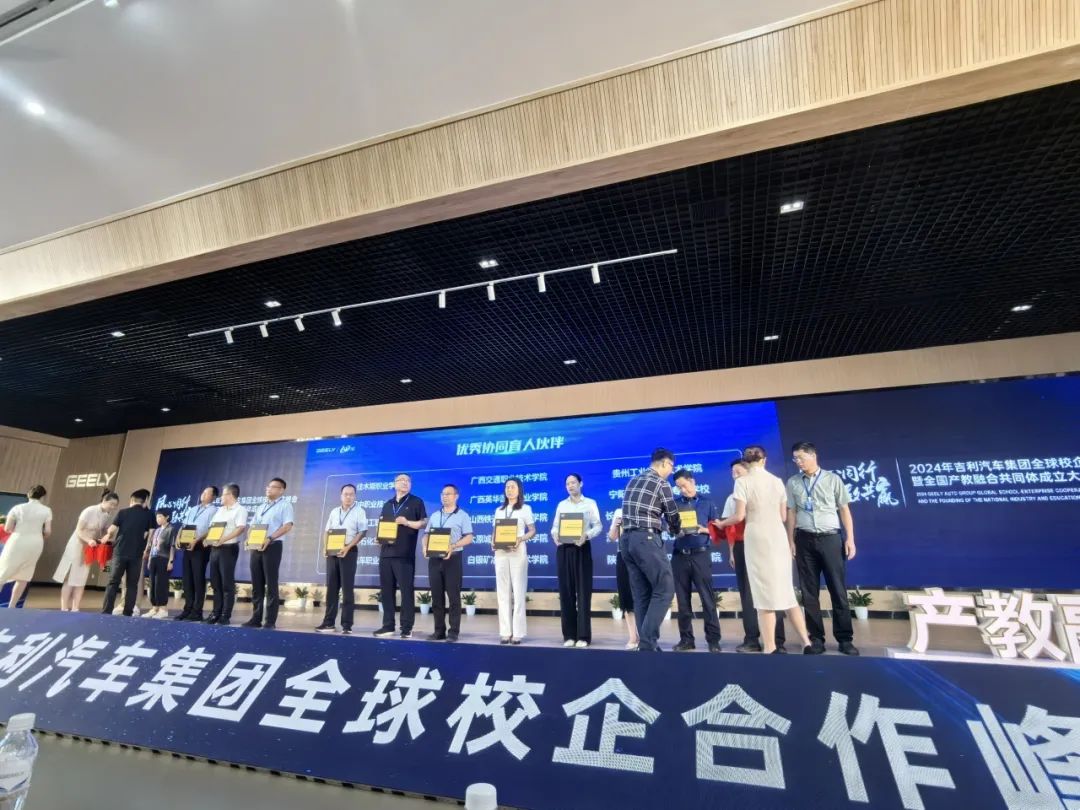 汽车集团全球校企合作峰会暨全国产教融合共同体大会在陕西省西安市成功举行。广西英华国际职业学院被评为吉利汽车集团优秀协同育人伙伴,受邀参加了本次盛会并接受了颁奖。