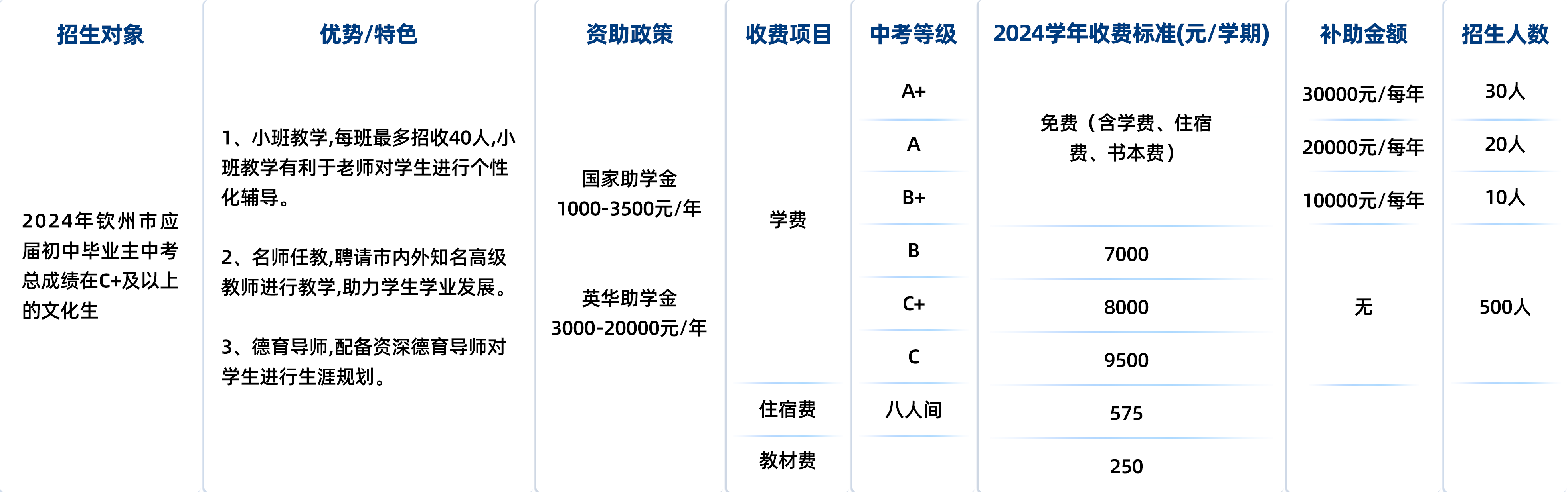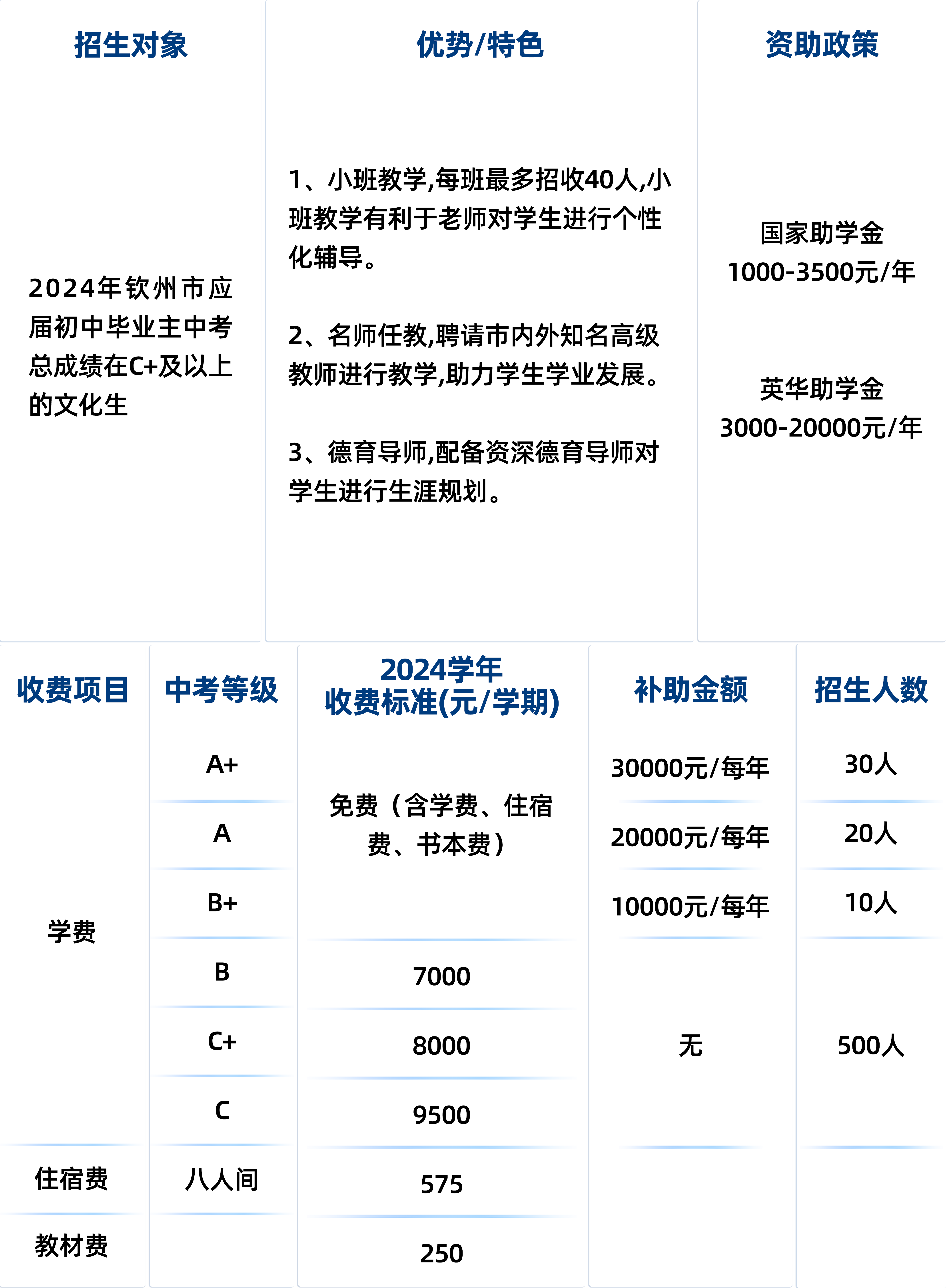 招生计划及收费标准