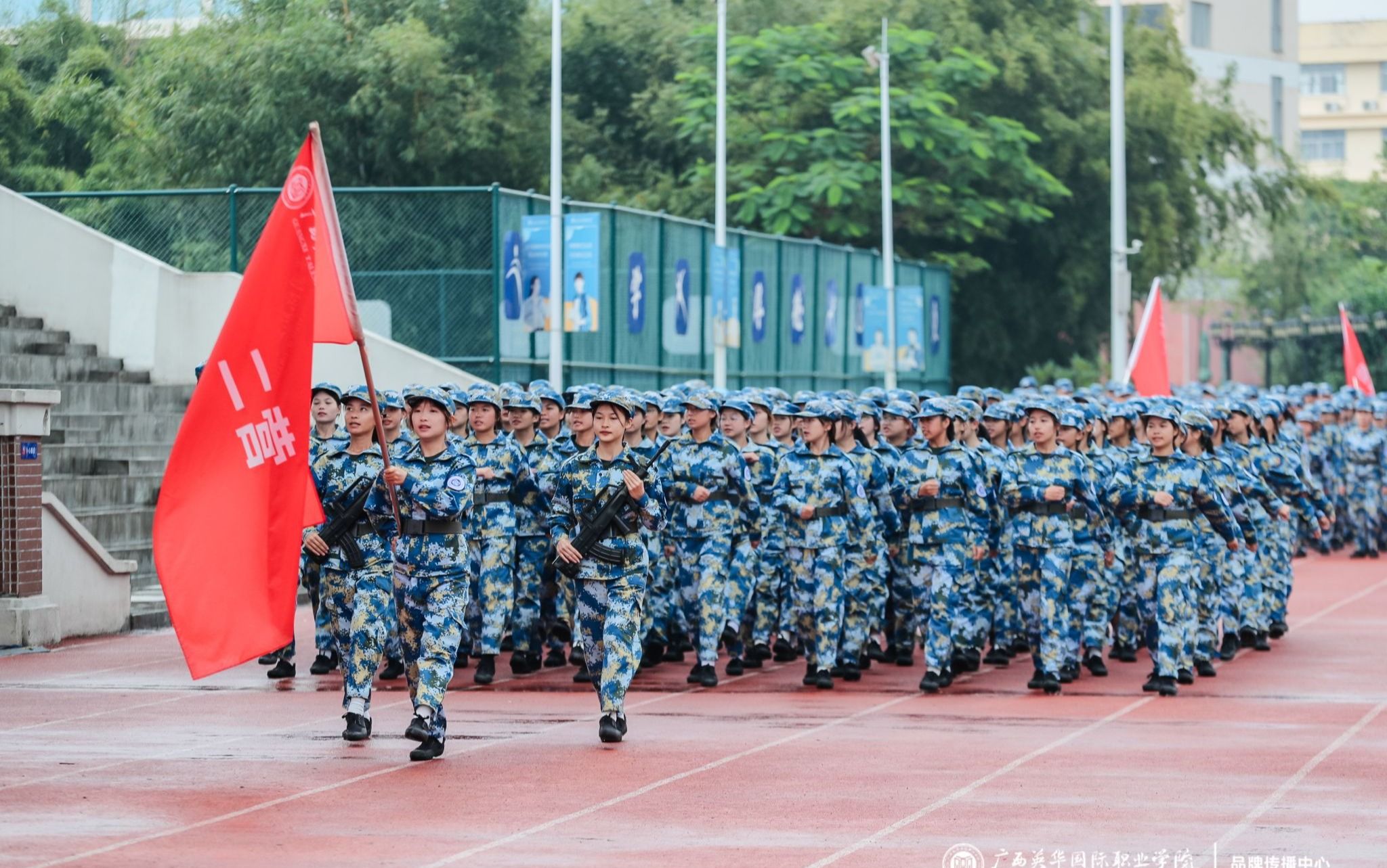军旗猎猎迎风展,战鼓催征再向前。11月3日下午,广西英华国际职业学院2023级新生军训总结表彰大会在落霞广场举行,军训汇报表演在威严雄壮的国歌声中拉开了帷幕。