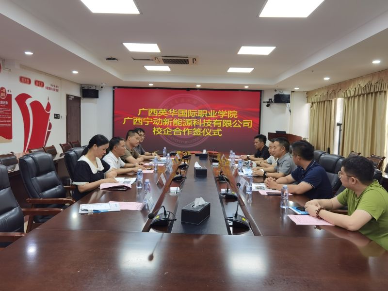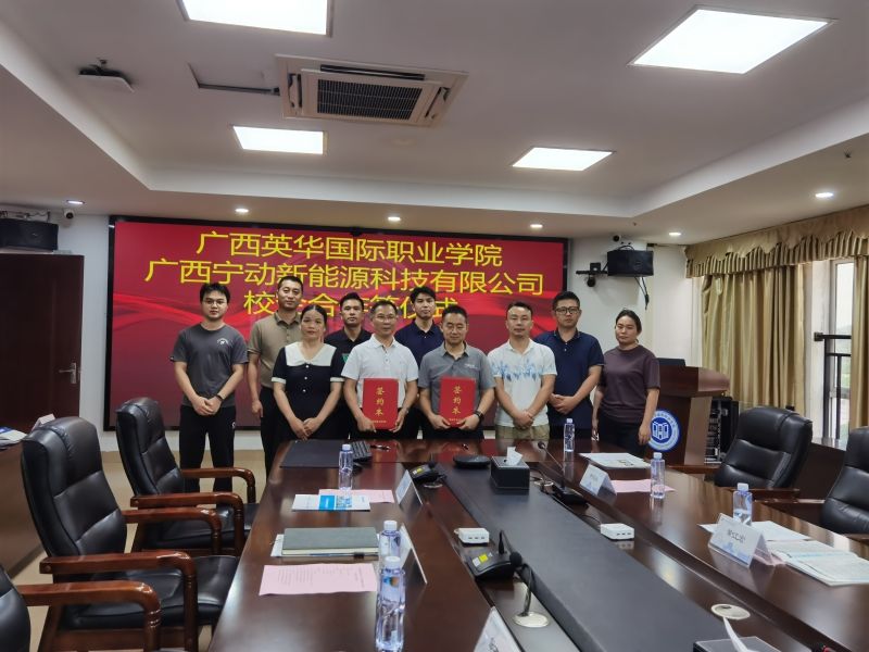 2025年5月15日,广西英华国际职业学院与广西宁动新能源科技有限公司举办了隆重的“校、企产学研长期合作框架协议”签约仪式,广西英华国际职业学院智能与机电工程学院院长邹才深、副院长马传刚、计算机系主任宁雪梅,广西宁动新能源科技有限公司产教融合经理付国云、产教融合主任黄江宏、钦州恒东新能源销售有限公司总经理黄海永等出席签约仪式。