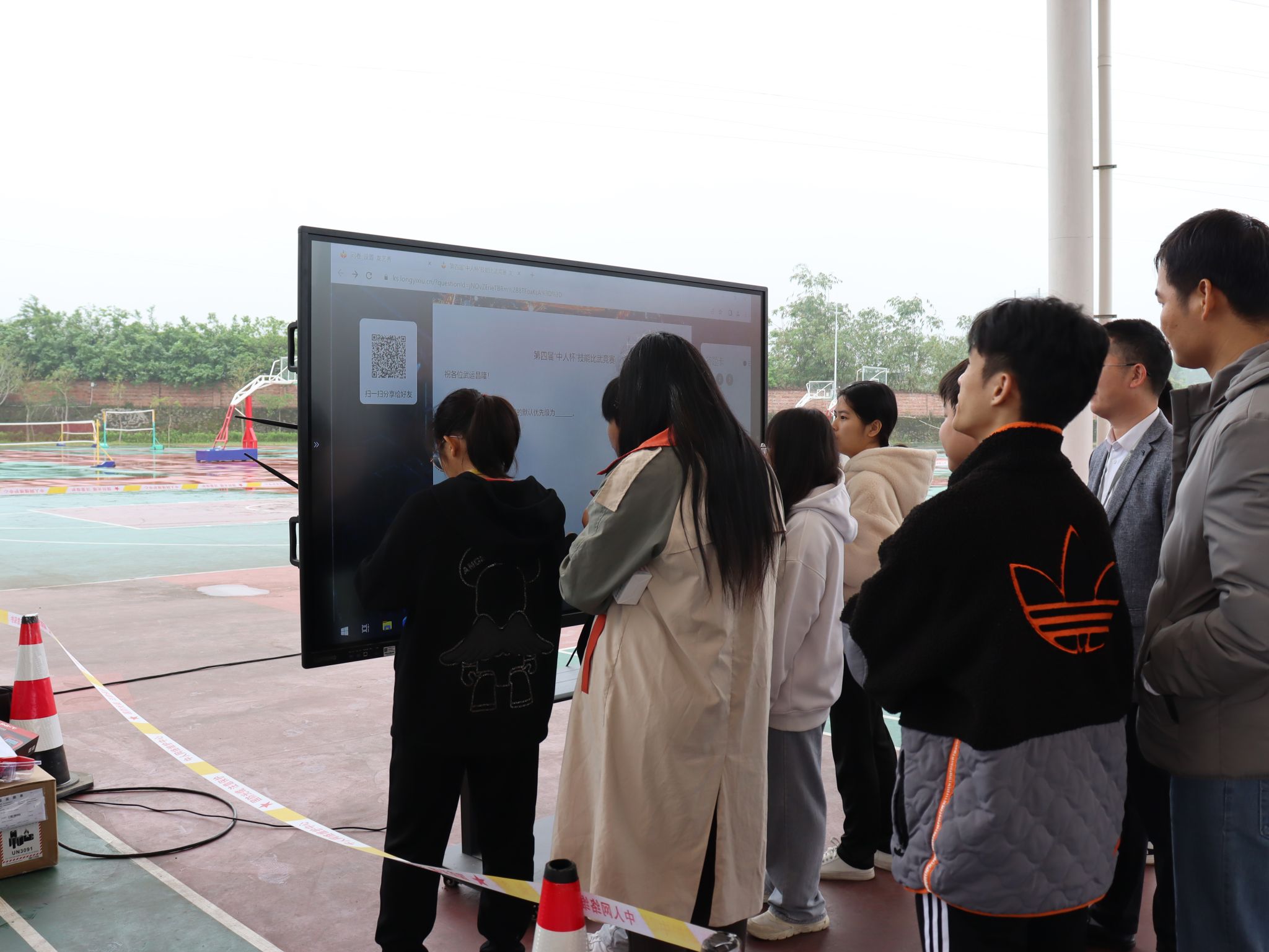 为增加同学们的积极性和参与感,我院将《网络专业知识答题挑战赛》和《校企技能联动实训》两个项目融入到企业的总决赛活动中。在答题挑战赛中,我们布置了一台触控式大屏,设置了200余道专业试题,涵盖计算机网络技术、无线技术、云计算技术等多个领域知识。系统会从题库中随机抽取3道题,答对题均有精美礼品领取。