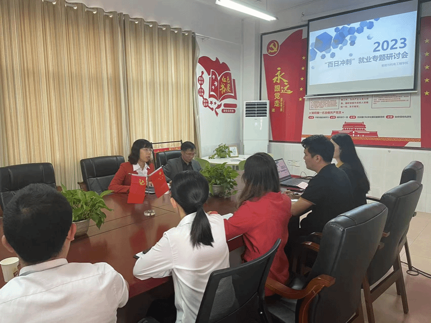 为了完成2023届毕业生就业目标、提高学生就业率、实现高品质就业率新的突破,3月10日上午,智能与机电工程学院在党员活动室召开2023届毕业生“百日冲刺”就业专题会议,分析了目前毕业生的就业现状,提出了工作重点和难点,与此同时,也为2023年的就业工作做了部署,就业中心主任石红敬、智能与机电工程学院院长邹才深、副院长邹芸芸以及辅导员参加本次会议。