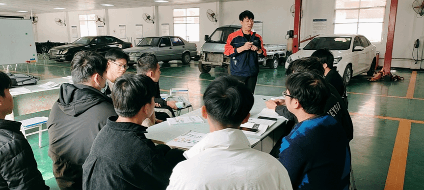 讲座结束后,孙老师还深入汽车实训室,与任课老师一起指导同学们的实操课程,耐心讲解各种汽车构造原理、新能源汽车的特点、维护保养知识和故障诊断技巧等,还耐心解答同学们的各种问题。同学们表示,通过孙老师的讲座和实操指导,更加深刻地理解了工匠精神的内涵,更加坚定了自己在技能学习方面的信心,在今后的学习和职业生涯中,要向孙老师这样的工匠学习,传扬卓越匠心文化,积极传承工匠精神,以优异的成绩为实现中华民族伟大复兴的中国梦贡献力量。