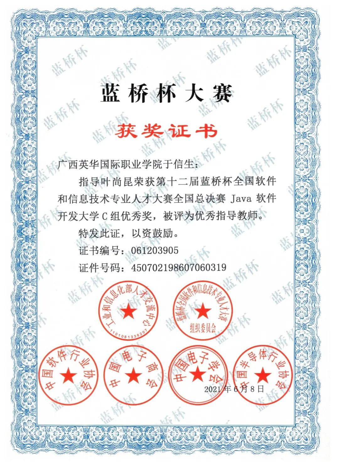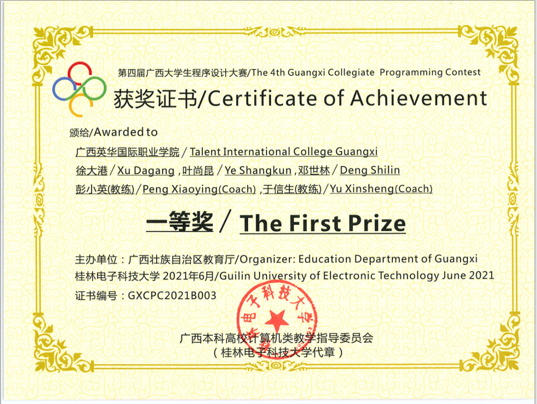 我校2019级软件技术专业邓世林、叶尚昆荣获广西区一等奖,并成功拿下国赛入场券,这已经是学校连续五年闯进国赛。此外,其余6名学生分别获得二等奖2项、三等奖4项。