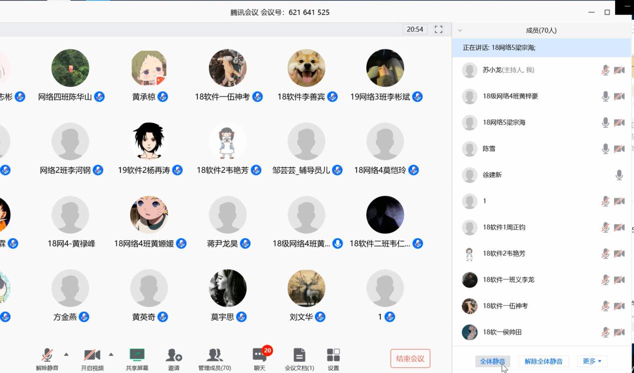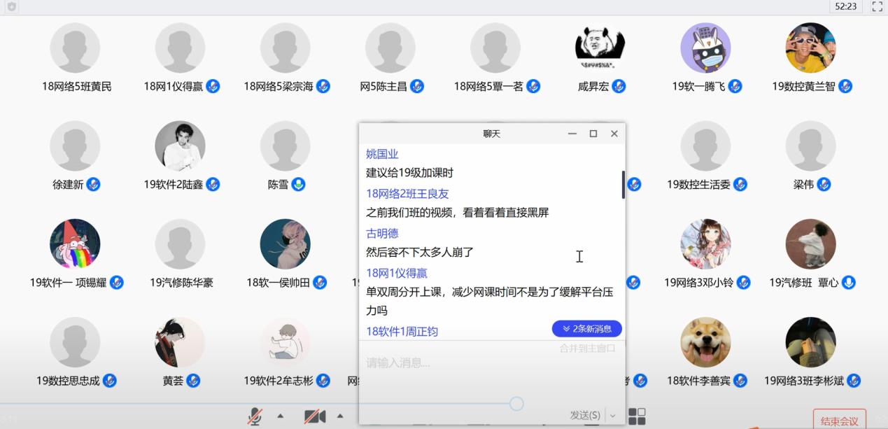 黄进才就学生线上教学到课率、健康打卡情况进行总结,并对大部分能坚持按时学习的同学给予肯定,同时也提出,希望同学们能够严格要求自己,增强自律意识。