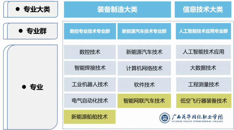 海洋工程学院锚定广西 “向海图强” 战略,自2010年创办以来,深耕先进制造、土木建筑、数字信息、现代服务四大核心领域,开设15个热门专业(含方向),精准培育服务北部湾向海经济的高技能人才。